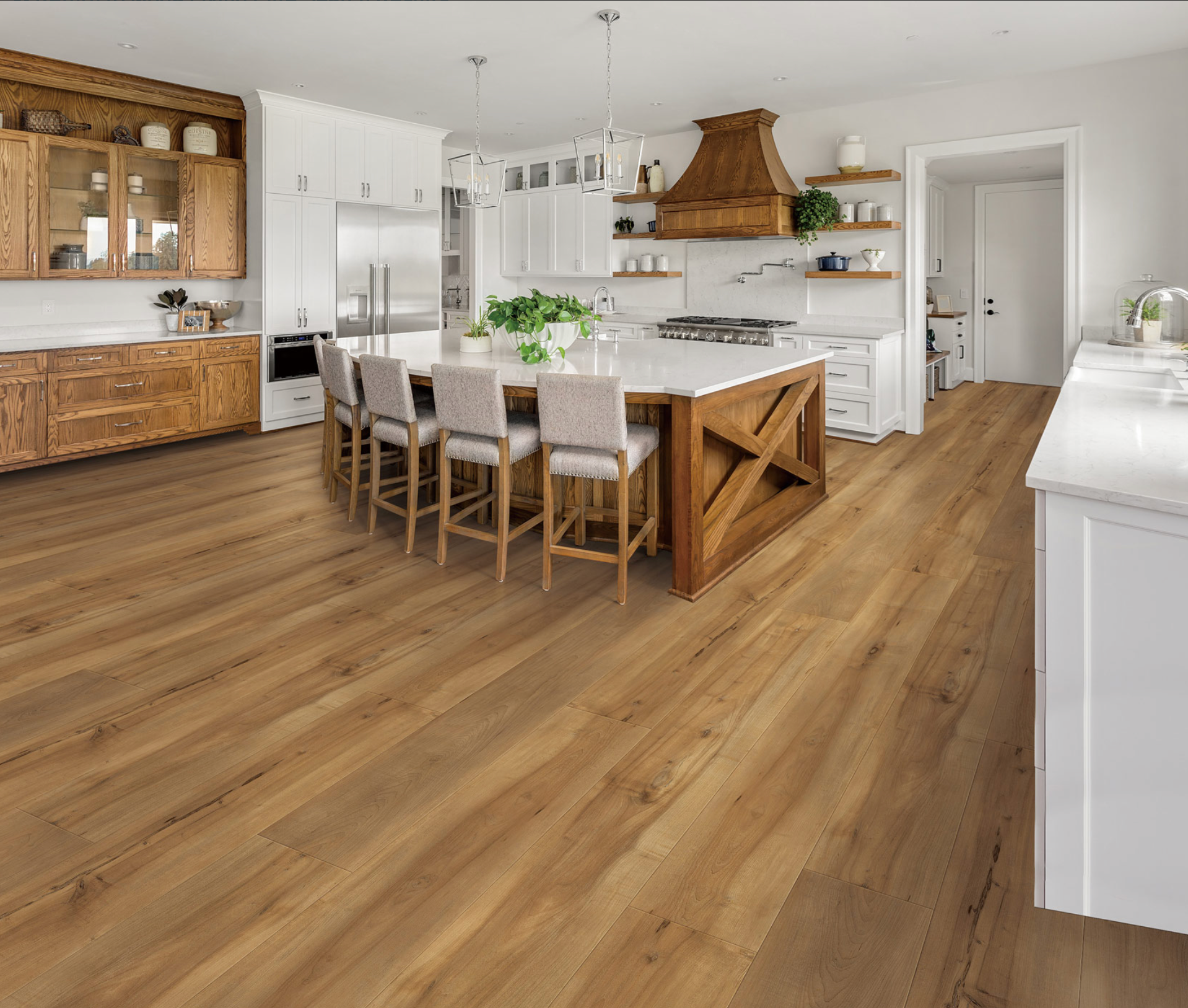 The MaxCore™ Moda Living Elite Collection offers the perfect combination of luxury and performance, featuring an authentic EIR (Embossed-in-Register) surface texture that mimics the natural look and feel of hardwood. Designed with wide and long planks and enhanced micro bevel edges, this 100% waterproof flooring delivers a sophisticated, realistic hardwood visual that's ideal for any space.